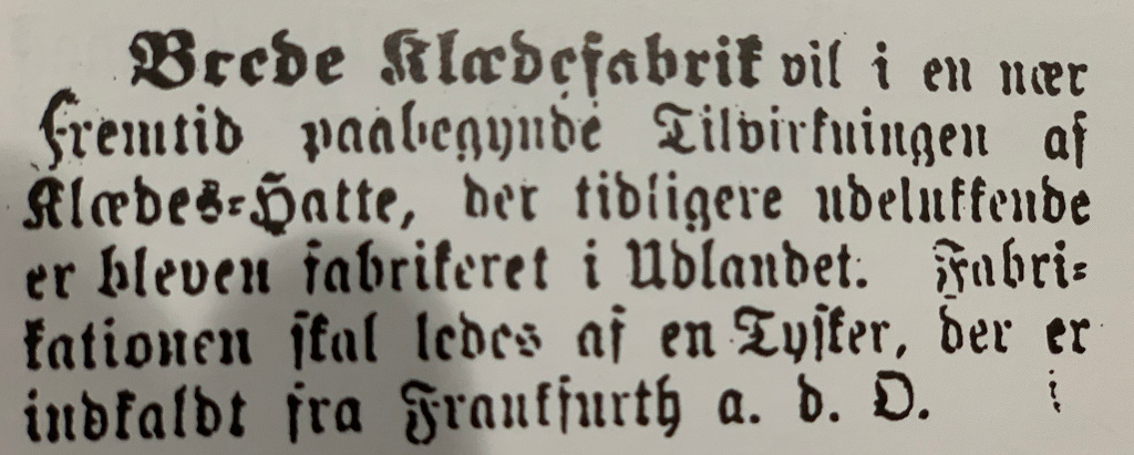 Det var virkelig ærgerligt, for hun kunne lide min idé og mit greb: Jeg ville i første omgang skrive om den oldefar, der indvandrede som hattemagermester til Brede Klædefabrik i 1890 og måske hans ti børn.