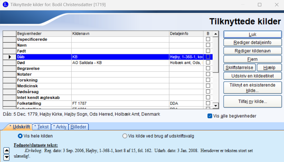 - opdatere de gamle “arkivhenvisninger” som overhovedet ikke var til kilder, men fx til IGI (International Genealogical Index) og mikrokortene …